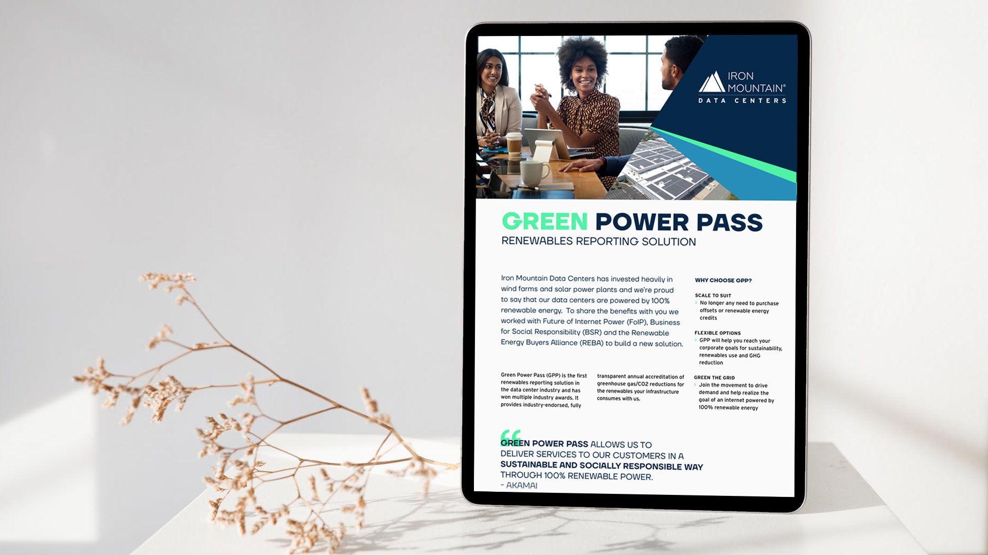 Green Power Pass is a renewables reporting solution, first in the data center industry, that has won multiple industry awards, providing industry-endorsed transparent annual accreditation for the renewables your infrastructure consumes with Iron Mountain Data Centers.